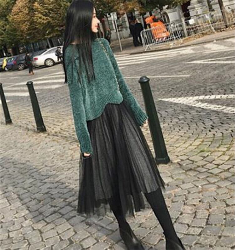 韓国ファッション レーヨン スカート ファッション ニット 2点セット 大人気 カジュアル
