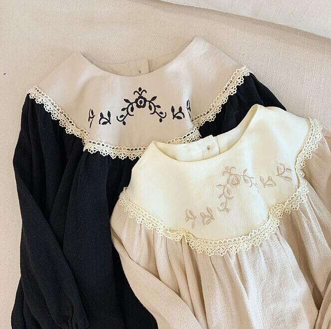 秋冬新作★子供服★ワンピース★長袖★韓国子供服★キッズ女の子★刺繍★2色★90-130CM
