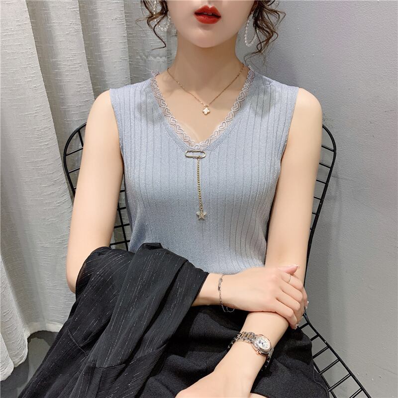 ins超人気 絶対流行 薄手 シンプル 無地 vネック ノースリーブ タンクトップ/キャミソール