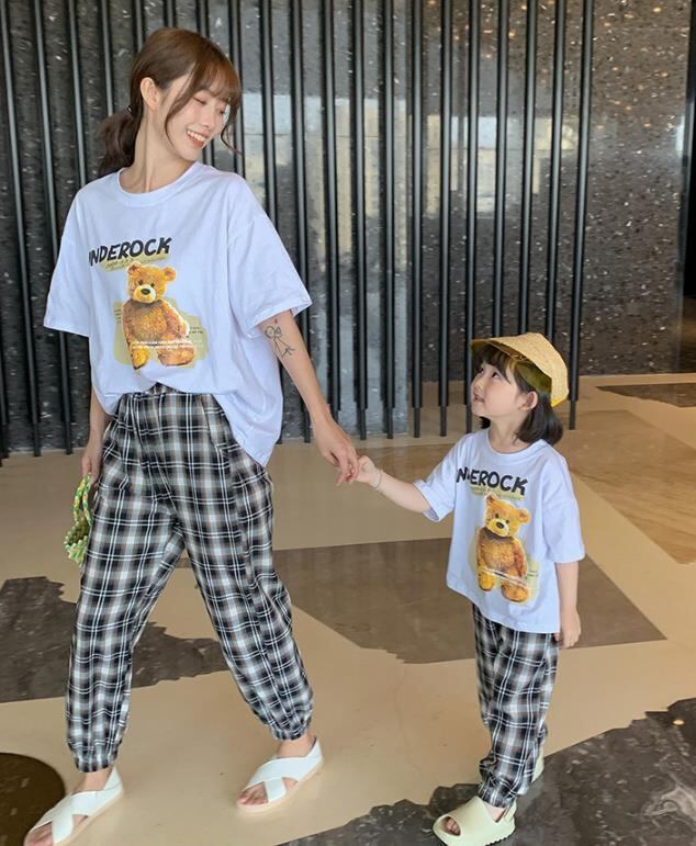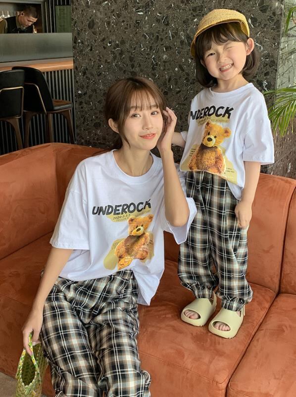 春夏新作★親子服★子供/レディース★キッズ服★ Tシャツ+ カジュアルパンツ ★セット 90-140/FREE SIZE